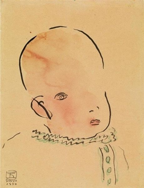 Kuzma Petrov-Vodkin made this painting, Fecteau, with oil on canvas. You can really see the hand of the artist here, can’t you? The brushstrokes are loose, and not too blended, so you get a sense of the process, the artist thinking, and rethinking as he goes. I’m drawn to how the face is rendered in fleshy reds and browns, with stark blacks for the eyes, giving the subject a startling directness. Around the face, cooler tones and loose lines sketch in the background, but they don’t quite resolve into a definite space. This contrast makes the child's face feel very present. You can see a similar approach in some of Paula Modersohn-Becker’s portraits, where the subject seems to emerge from the canvas with an almost sculptural presence. Ultimately, it’s this tension between abstraction and representation, the solid and the ephemeral, that makes the painting so compelling.