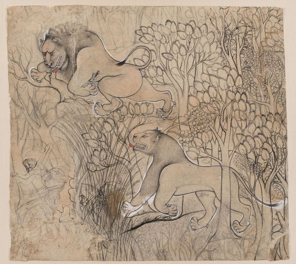 Editor: This is "The Rider," a watercolor and ink painting by Paul Gauguin from around 1902. The muted tones give it a dreamlike quality, almost like a fading memory. The composition, particularly the juxtaposition of the figure and landscape, feels unresolved. What do you see in this piece? Curator: I'm struck by the formal relationships at play here. Consider the use of watercolor; Gauguin coaxes surprising effects from the medium. Observe how he layers washes of color to create depth, though a depth that remains resolutely flattened, pictorial. It's a study in contrasts – the fluidity of the watercolor versus the relative precision of the ink, the implied movement of the rider versus the static quality of the composition. Do you find that the limited palette contributes to its enigmatic quality? Editor: Yes, definitely. The restricted range of colors brings a sense of unity, but also feels almost oppressive, contributing to the dreamlike, or even nightmarish, mood I initially perceived. Curator: Precisely. And note how the linear elements, the ink outlines, define the forms yet simultaneously flatten them. This creates a tension between representation and abstraction, pulling us back to the materiality of the work itself, the paper, the pigment. It's not merely *of* a rider; it is itself a carefully constructed object. Editor: That makes me see it differently. I was so focused on the subject matter that I overlooked the interplay of the materials. Thanks for highlighting that. Curator: The beauty of formalism lies in understanding that the subject is secondary. The *how* is everything. Editor: So true! This close analysis really unlocked a new way to appreciate Gauguin's artistry.