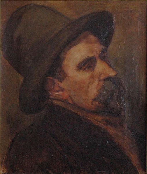 Curator: There’s a quiet intensity to this portrait. The sitter’s gaze is direct, unwavering almost. Editor: This is "Portrait of Uncle Dominique in a Turban," painted by Paul Cézanne in 1866. He created several paintings of his uncle, but this one stands out due to its vibrant colors and use of impasto. Curator: The turban is particularly striking. What might Cézanne have intended with this headwear? Editor: Historically, turbans were used as marks of cultural identity, rank, or even religious affiliation. It seems Cézanne is deliberately dressing Dominique up. There’s an element of theatrics at play here. He seems to be experimenting with Orientalist tropes to explore ideas around identity, self-fashioning, and perhaps challenge traditional portraiture. Curator: Or even playfully referencing artistic traditions, evoking a sense of history, perhaps alluding to a world of sultans and dignitaries, injecting an exotic flair. But it feels like there's more to it than that. The sheer volume and texture give it a sculptural presence almost independent of the sitter. The psychological intensity of the image makes me consider what the painting might mean as a symbolic statement of the subject's, and artist's personality. Editor: We have to acknowledge how artists often navigate expectations and demands to portray sitters with a certain degree of dignity and respect. By positioning his uncle in a turban, Cézanne elevates him, while also experimenting with the visual language of the exotic, disrupting bourgeois conventions. This portrait also precedes Cézanne's fully developed Post-Impressionistic style, revealing a young artist already pushing the boundaries of portraiture. Curator: This impasto technique creates depth but also conceals; the identity of Uncle Dominique becomes less about clear representation, and more about constructed character. Perhaps that says more about Cèzanne's exploration of portraying his uncle in particular and in how constructing identity can be layered and built upon expectations. Editor: Yes, by appropriating elements like the turban, Cézanne doesn’t just replicate existing power dynamics; he uses his artistic vision to probe the complex interaction between identity and representation, challenging existing forms of authority through representation. Curator: This truly shows us that paintings not only embody artistic intention but become reflections of socio-historical context. It's fascinating how even a portrait, so seemingly personal, can reflect the politics of the time.