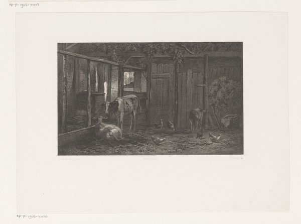 Curator: This is "Woman Praying by a Corpse" by Hendrik Adriaan Christiaan Dekker, dating from 1846 to 1863. It combines the graphic techniques of etching and pencil in its rendering. Editor: It's stark, isn’t it? The kind of room that holds its breath. You can almost smell the beeswax from those candles next to that severe, gothic cross. Curator: Precisely. Note how Dekker uses contrasting light and shadow to structure the composition, guiding the viewer's eye from the mundane details of the fruit on the table, to the illuminated figure of the praying woman. Editor: The lines on her hunched back! They are screaming, her body is practically a question mark pointed at the shrouded bed. I can practically hear her whispering prayers and desperate pleas. Curator: Indeed. Dekker evokes strong emotional resonance, drawing upon romanticist sentiments and, notably, grounding it with realist techniques. Consider how the formal geometry of the cross balances against the organic, curvilinear shapes in the folds of her habit and the linens. Editor: Balance implies an equal distribution; but here, every geometric certainty seems to crumble. The very act of mourning feels so intimate, it feels like the scene shouldn't be watched. It's almost like invading her space. Curator: Perhaps Dekker means to critique, as much as portray. Consider how he positions the viewer – not as a participant but an observer. We are granted access to a private moment of grief. The composition acts almost as a moral reflection. Editor: A reflection indeed. In a very sobering manner. This image certainly carries an immense, and sorrowful gravitas. It makes me thankful for the loved ones around me now. Curator: And in its formal precision and carefully constructed visual language, Dekker manages to evoke profound emotional empathy with this poignant narrative.