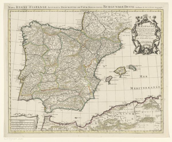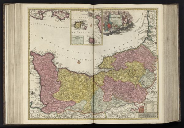 Theodorus Danckerts created this ‘Sea Chart of the Channel’ without a specified date, using engraving as his medium. Notice how England and France are rendered in different colors and tones, a structural technique to visually separate the geopolitical entities. Danckerts uses line and color to create a sense of order and orientation but also conveys a rich array of data. This map isn't just a depiction of geography; it's a semiotic system that signifies power, knowledge, and the relationship between nations. The visual organization with navigational lines demonstrates the early modern period's emphasis on empiricism, navigation and scientific exploration. Consider how the embellishments like the cherubs and the figure of Navigation add layers of meaning. These figures function as cultural symbols, invoking classical allegories and associating maritime exploration with divine favor and intellectual prowess. The ‘Sea Chart of the Channel’ is therefore not only a functional tool but also an elaborate statement about cultural and political ambitions.