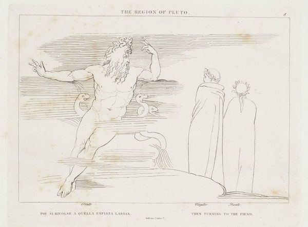 Curator: "The Region of Selfishness" by John Flaxman presents a fascinating study in line and form. What strikes you most about this etching? Editor: Well, the figures seem caught in a frantic rush, almost like a production line. The title suggests a moral commentary, but the means of conveying it feels so… manufactured. What does that tension tell us? Curator: Exactly! Flaxman, working during the rise of industrial production, likely saw parallels between the dehumanization of labor and the consequences of unchecked egoism. Note the repetitive poses. Is this a critique of societal structures? Editor: So, it's not just about individual selfishness, but the system that enables or even encourages it? That's powerful! Curator: Precisely. Flaxman uses the etching process itself, a form of reproduction, to highlight the mechanized nature of selfishness and its widespread impact. It forces us to consider not just the "what" but the "how" of moral decay. Editor: I see it now. The medium really does amplify the message. Thanks for pointing that out!
