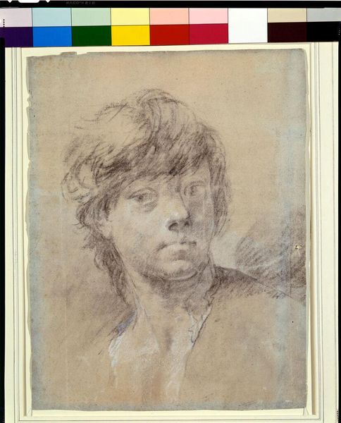 Editor: Here we have Jan Toorop's self-portrait from 1882, a charcoal and pencil drawing held here at the Rijksmuseum. It's quite somber and sketch-like. What do you see in this piece, particularly regarding the materiality of the work? Curator: What strikes me is the overt display of the working process. The visible strokes of charcoal and pencil are not just means to an end but become central to the work's aesthetic. Toorop highlights the labor involved in creation. How does that resonate with his later adoption of symbolism and Art Nouveau, considering the laborious, almost manufactured aspect of those styles, moving from naturalistic depiction to ornamental construction? Editor: That’s an interesting point, this feels almost like a study. Does this focus on process also suggest a comment on the artist's identity? The self-portrait becomes less about a likeness and more about the act of self-representation. Curator: Precisely. The chosen medium, the roughness of the marks, speaks to a self-fashioning. It is not merely an image but a constructed idea, reflecting a challenge to the commodification of the artist’s image. What do you think the rough strokes convey about the contemporary ideas of artistic skill and labor? Editor: It feels almost anti-establishment, in a way. Almost like Toorop is democratizing the artistic process. It's a refreshing view on self-portraiture. Curator: It disrupts the traditional notion of artistic genius as effortless creation. By showcasing the work, Toorop elevates the craft and questions what constitutes 'high' art. A powerful message, presented via such humble materials. Editor: It really does make you consider the materials and process in art, even beyond the final image. Thanks! Curator: Indeed! A reminder that art is always a product of labor, choices, and materials.