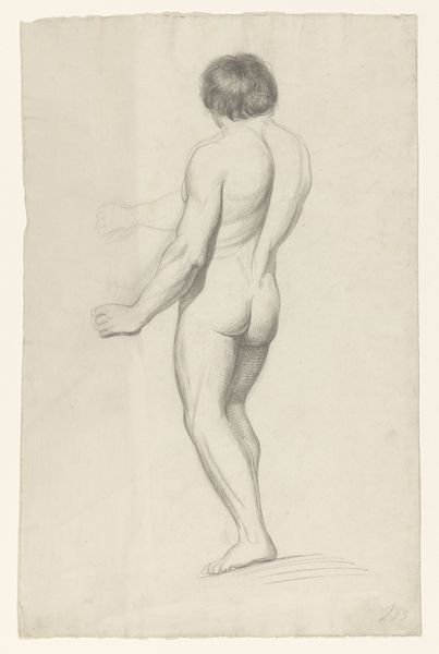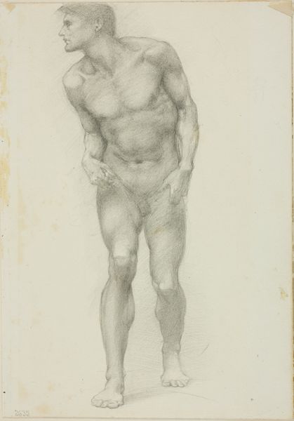 Edward Burne-Jones made this pencil drawing, titled "Back View of Standing Male Nude," during his career as one of Britain’s leading Pre-Raphaelite artists. The male nude in art carries a heavy weight of cultural meaning. Throughout the nineteenth century, the display of male bodies was controversial, with some critics deeming them immoral. In a culture that prized male power, the male nude was seen as a celebration of physical perfection and the ideal form, inherited from the classical world. Burne-Jones was fascinated by classical antiquity, and he often looked to the art of ancient Greece and Rome for inspiration. He was also influenced by the Italian Renaissance, and this drawing recalls the figures of Michelangelo. As a historian, I can explore this further by looking at the artist’s letters and sketchbooks, exhibition reviews, and the writings of his contemporaries. Through attention to the social and institutional context, we see how even a seemingly simple sketch touches on complex issues.
