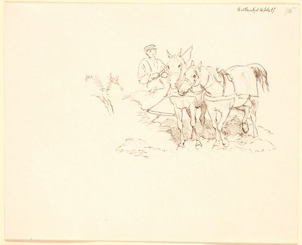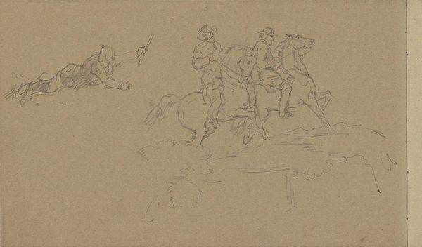 This graphite drawing, titled *Bayerische Cheveaux-légers*, was created by Heinrich Lang. Born in Bavaria, Germany, in 1838, Lang made this sketch of Bavarian light cavalry in 1882. The image presents soldiers and horses, evoking the might and power of the Bavarian army. Lang's military drawings reflect the intense nationalism sweeping through Europe at the time. It was a period of rapid industrialization and political upheaval as countries consolidated power, sometimes through violent conflict. Though we view this scene from a distance, one can only imagine the experience of those pressed into military service. The work offers us a moment to reflect on the nature of duty, obedience, and the cost of war to both humans and animals. It stands as a testament to the enduring impact of socio-political forces on individual lives and collective memory.