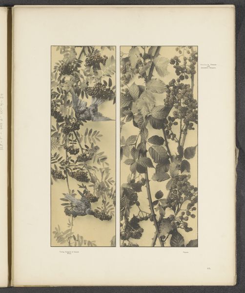 Editor: Here we have "Vlakken met passiebloemen, vlinders en orchideeën," which translates to "Panels with passion flowers, butterflies and orchids," an ink drawing on paper from before 1897. The composition feels so meticulously arranged, almost scientific in its presentation. How do you interpret this work, focusing on its formal elements? Curator: Indeed, the formal arrangement is striking. Consider the careful balance of positive and negative space, achieved through the varying densities of the ink lines. Note also how the artist segmented the composition into distinct panels, which allows for a comparative study of the depicted flora and fauna. Does this paneling contribute to, or detract from, the drawing’s overall unity, in your view? Editor: I think the paneling helps organize what would otherwise be overwhelming. Each panel becomes a focused study, and my eyes jump to each shape in a dance that's organized and deliberate. What does the consistency of the line quality and the monochrome palette tell us? Curator: Precisely! The consistent line weight and monochromatic palette unify the work despite the varied subject matter. It guides the viewer's eye through a formal comparison of textures and shapes. The dedication to linear precision underscores a commitment to observation, reducing the elements to their barest forms. In your assessment, does the drawing achieve a successful integration of these observed elements into a cohesive visual statement? Editor: I see how each panel functions almost as a study of form and shape itself. Thank you; I see more of the balance the artist was aiming for now. Curator: Glad to have helped clarify your perception of this work's design elements and balance.