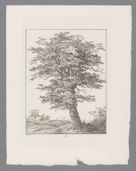 Søren Henrik Petersen etched this image of an oak tree, or "Egetræ" as it's known in Danish, sometime in the first half of the 19th century. The oak, a symbol of strength and endurance, has been revered across cultures, from the ancient Greeks who associated it with Zeus, to the Norse, who linked it to Thor. In Petersen’s time, the oak was a symbol of national identity and steadfastness. This very tree, standing alone, embodies a proud resilience. Consider the recurring motif of the tree throughout art history – Yggdrasil in Norse mythology, the Tree of Knowledge in religious contexts, or even the trees of the Renaissance landscapes. They all tap into a primal human fascination with nature's power. This oak, with its gnarled branches and deep roots, invites us to reflect on our own connection to the earth, to the passage of time, and to the enduring spirit that binds us to the natural world. Its image resonates within us, echoing through the halls of memory.
