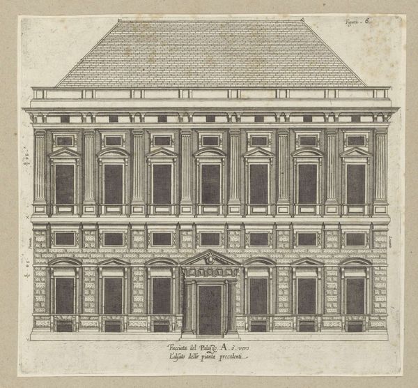 Editor: This is *Palazzo Di Negro*, an engraving from 1622 by Nicolaes Ryckmans, held at the Rijksmuseum. The precision is striking, but it also feels quite formal and reserved. What strikes you about it? Curator: Its precise depiction reminds us that prints like this served a vital function in disseminating architectural styles and ideals during the Renaissance. Consider the political and social context: powerful families like the Di Negro used architecture to project wealth, taste, and their connections to classical authority. Do you notice how the engraving flattens the space, emphasizing the facade’s geometric order? Editor: Yes, it’s almost like an architectural blueprint rather than a picturesque view. Were these prints circulated among architects and builders, almost like manuals? Curator: Exactly! They helped standardize architectural vocabulary across regions, facilitating the spread of Italian Renaissance ideas. Furthermore, the act of representing the Palazzo through print made it accessible, transforming a private monument into a public statement of cultural ambition. What do you think the repetitive elements – the windows, the arches – communicate? Editor: A sense of power and control, perhaps? Like, ‘we can afford this level of consistency and order.’ But also, maybe the print flattens and standardizes experience and appreciation by limiting personal or political expressivity. Curator: Precisely. The print transforms the building into an emblem, shaped as much by political aspiration as aesthetic innovation. Consider how these printed images influenced urban development and the performance of power. Editor: It’s interesting how a seemingly straightforward architectural image is loaded with so much cultural and political meaning. Thanks, this has made me see the print and the palazzo very differently! Curator: It's all about understanding the layers of context that shaped both its creation and reception. A valuable lesson indeed.