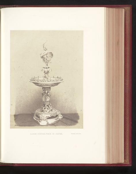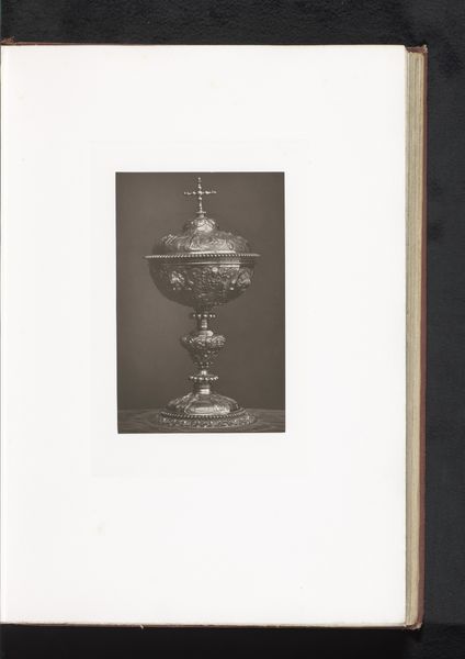 Editor: Here we have a photograph of Antoine Vechte’s silver vase, commissioned by Hunt & Roskill for the Great Exhibition of 1851. The intricate details and almost overwhelming imagery covering the surface definitely give me a sense of opulence, bordering on the theatrical. What catches your eye when you look at it? Curator: Oh, this vase! It’s more than just opulence; it's a Victorian power statement rendered in silver! Imagine the crowds at the Great Exhibition, breathless, utterly dwarfed by the industrial prowess on display. Vechte wasn’t just making a vase; he was sculpting a metaphor for British ingenuity and imperial ambition. Editor: So it’s about showing off Britain's capabilities on a global stage? Curator: Exactly! But also, notice how Vechte uses the repoussé technique. He’s not just adding decoration; he’s literally beating the silver into submission to tell a story. The high relief almost explodes outwards, demanding attention. It’s practically shouting, “Look what we can do!” What sort of story do you imagine it's telling? Editor: Hmm, a story of triumph? The figures seem to be reaching upwards. Maybe it represents the pursuit of progress. I must admit I was a little put off by the business of the whole thing before, but knowing it’s meant to convey this ambition makes it fascinating! Curator: Yes! The density represents industry! You see the figures reaching, striving, almost battling for space—that’s the relentless drive of the Victorian era! And that cherubic figure on top – perhaps it symbolizes a future secured by industrial advancement! Next time you’re feeling overwhelmed, remember Vechte's vase, a silver monument to ambition, sculpted to blow our minds even now. Editor: I never thought I’d find myself relating to a silver vase, but the way it captures such human drive, you’re right. It makes me look at it differently. Thanks so much for this perspective.