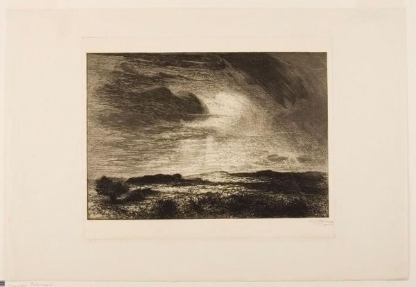 Editor: This is William Morris' "Landscape with Clouds", from the Harvard Art Museums. It's a simple charcoal drawing. I find it quite somber and moody, almost ominous. What do you see in this piece? Curator: It's compelling how Morris, known for his vibrant patterns, captures such raw emotion here. Clouds, across cultures, often symbolize transformation, the ephemeral nature of life. Do you think Morris, immersed in medieval symbolism, might be hinting at something beyond the literal landscape? Editor: That’s interesting! I hadn’t thought about the symbolism of clouds. Maybe it's about change or the passage of time? Curator: Precisely. Consider the Romantic era's fascination with the sublime, where nature evokes awe and even fear. Perhaps Morris is tapping into that collective emotional memory. Editor: I see what you mean! It definitely adds another layer to the drawing. Curator: Indeed. By looking at the symbols, it reflects how cultural memory shapes our perception of art. Editor: This was an eye-opening experience. Thanks!