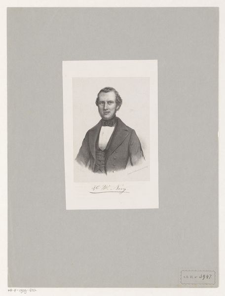 Editor: So, here we have "Portret van Geert Reinders," a print by Johan Hendrik Hoffmeister from sometime between 1851 and 1883. The engraving itself has a somber, almost austere quality. What strikes you about this piece? Curator: The stoicism is evident, isn’t it? Beyond the realism typical of the period, I see a statement about societal expectations placed on men. Think about the historical context – the 19th century was an era defined by rigid social hierarchies and burgeoning industrialism. Consider the gaze; does it invite engagement, or does it hold you at arm's length? Editor: It feels very… formal. He's definitely not smiling! Was this typical for portraits at the time? Curator: Absolutely. Smiling was seen as undignified in formal portraiture. More broadly, think about who had the privilege to be portrayed. Portraits weren’t simply aesthetic objects; they were markers of status, projecting ideals of respectability and power, particularly for men. What does this image say about Reinders’ social standing? Editor: Well, he's wearing a suit, so middle class, perhaps? It makes me think about the absence of women in positions of power during this time. Were they depicted differently? Curator: Precisely. Female portraits often emphasized beauty and domesticity. By comparison, men were presented as figures of authority, intellect, and industry, shaping not just their immediate environment, but society as a whole. This work is as much about gender roles as it is about Reinders. Editor: That makes so much sense. Seeing it as a social commentary, it completely changes my perception of what Hoffmeister was trying to communicate. Curator: Exactly! And thinking about portraiture as a performance of identity invites critical inquiry. What narratives are prioritized, and whose stories are deliberately left untold? This understanding helps us contextualize historical realities, giving visibility to subjugated histories and thus changing the landscape of the arts.