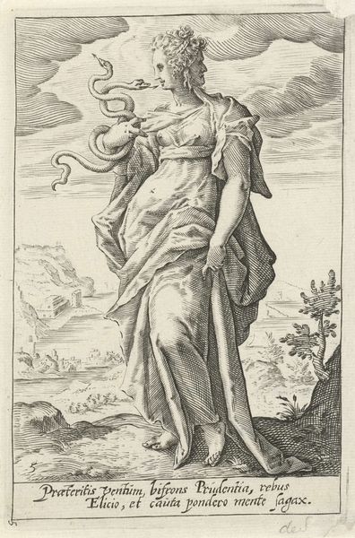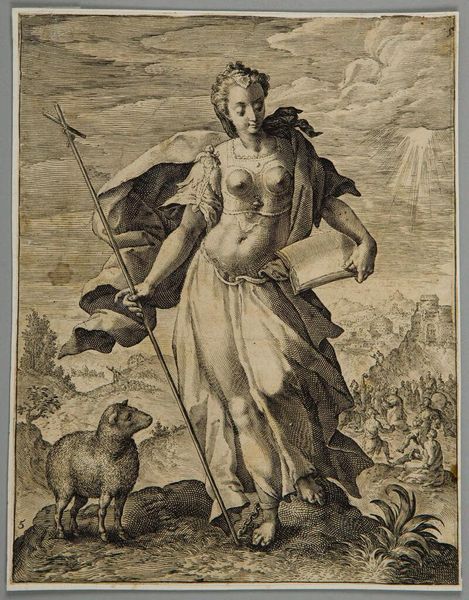 This print, "Geloof," meaning "Faith," comes to us from an anonymous artist. It uses the visual language of its time to convey complex ideas about belief. Made in the Netherlands, the figure of Faith is allegorical. She is depicted as a woman holding a cross in one hand and a book in the other. These are visual codes immediately recognizable to a 17th-century audience. The cross symbolizes the crucifixion of Christ, the central event in Christian theology, while the book most likely represents the Bible, the foundational text of the Christian faith. In the background, the landscape is dotted with a castle, potentially suggesting the power and authority of religious institutions at the time. The print engages with the religious and political debates that shaped the Netherlands. The rise of Protestantism had challenged the dominance of the Catholic Church and brought about new ideas about individual belief and the role of the Bible. To fully understand this print, we can consult historical documents from the period, religious treatises, and other visual representations of faith. In doing so, we reveal the complex interplay of social forces and artistic expression.