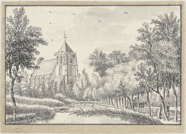 Jan de Beijer made this pen drawing, Dorpsstraat te Leersum, in 1756. De Beijer was part of a tradition of topographical artists, who documented cities, villages, and landscapes. This particular drawing captures the Dutch village of Leersum with a stark realism, typical of the 18th century. It invites us to consider the intersections of community and identity in rural life. The church, a prominent structure, symbolizes the central role of religion in community life. The drawing's emphasis on everyday architecture and the natural environment serves as a reminder of the close relationship between the Dutch and their landscape. While seemingly a simple depiction of a village street, it subtly reflects the values and social structures of the time. It prompts us to reflect on how places shape collective identity and individual experience.