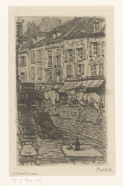 Wijnand Otto Jan Nieuwenkamp created this print of houses on the harbor of Enkhuizen. The detailed linework and close perspective offer a glimpse into the intimate setting of a Dutch port town. The print's creation reflects the rise of the art market and printmaking societies in the Netherlands, which was part of a broader movement to democratize art and make it more accessible to a wider audience. Nieuwenkamp’s choice of subject, a commonplace harbor scene, aligns with this aim. By focusing on the everyday, he elevates the ordinary and invites viewers to appreciate the beauty of their surroundings. The detailed rendering of the architecture and the bustling activity around the harbor, speaks to the social fabric of the community. To fully appreciate this work, one might research the history of Enkhuizen as a trading hub or the artistic movements of the time. In doing so, we gain insight into how art both reflects and shapes our understanding of the world.