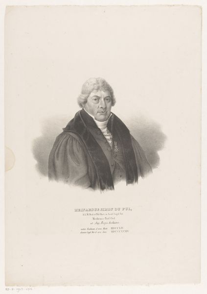 Curator: Let’s consider this finely rendered portrait—identified as "Portret van Gualtherus van Doeveren," and dated somewhere between 1809 and 1871, of which the author is unfortunately anonymous. The medium appears to be a precise application of graphite. What captures your eye here? Editor: Immediately, there's a powerful stillness—an almost clinical detachment—despite the ornate costume. This work embodies for me a reflection of power dynamics, from its history of medicine to ideas about class and appearance, making it intriguing to unravel what societal structure existed in those times. Curator: Indeed. I think the portrait’s strength lies in the nuanced detailing, such as how the texture is used to distinguish between skin and textile. Considering van Doeveren's medical profession, the artist highlights both the intellect and the authority invested in him during a period of profound societal and scientific transition. Note the way the light reflects off the meticulously rendered wig, suggesting societal prominence. Editor: Right. Beyond status, it feels important to examine the implications of representing knowledge, specifically medical knowledge, in a visual form accessible only to certain groups. What cultural expectations were upheld or subverted through this very act of portrayal? We must recognize how that image then affects present assumptions about expertise. Curator: That makes me also wonder if we can link his features back to broader trends of representation of power through similar visual signifiers during the 19th century: wigs, elaborate garments, posture. They solidify archetypes—shaping future interpretations of leadership. Editor: I can see that too. By perpetuating specific codes of representation, the piece reveals how dominant ideologies were subtly yet firmly entrenched within the public consciousness, solidifying what Pierre Bourdieu describes as "symbolic capital" afforded to those belonging to that upper class. The subject here literally embodies cultural ideals and prejudices. Curator: Yes, it asks viewers to reflect not only on the past’s legacy but how those visuals shape our interpretation of present and future models. Editor: Precisely! It encourages a crucial critical perspective. I came in with the image's impression of calmness but am leaving reminded of its undercurrent of sociopolitical weight.