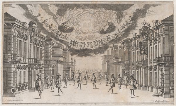 This stage design from 'Il Pomo D'Oro' was etched by Mathäus Küsel in the 17th century. The scene is dominated by the motif of the caryatid: female figures integrated as architectural support. Here, ranks of stone women bear the weight of the palace, their silent strength a testament to enduring power. This motif echoes through time, from the Erechtheion in ancient Athens to Renaissance Europe, each iteration layering new cultural meanings onto the archetype of female strength and servitude. Consider the psychological weight these figures carry, both literally and symbolically. The enduring presence of the caryatid speaks to a deep-seated societal impulse to both celebrate and subjugate female power. We see how this symbol, originally rooted in classical antiquity, resurfaces here transformed, yet still bearing traces of its ancient origins. The caryatid in her various guises persists as a potent symbol of both the burdens and the resilience inherent in the feminine experience.