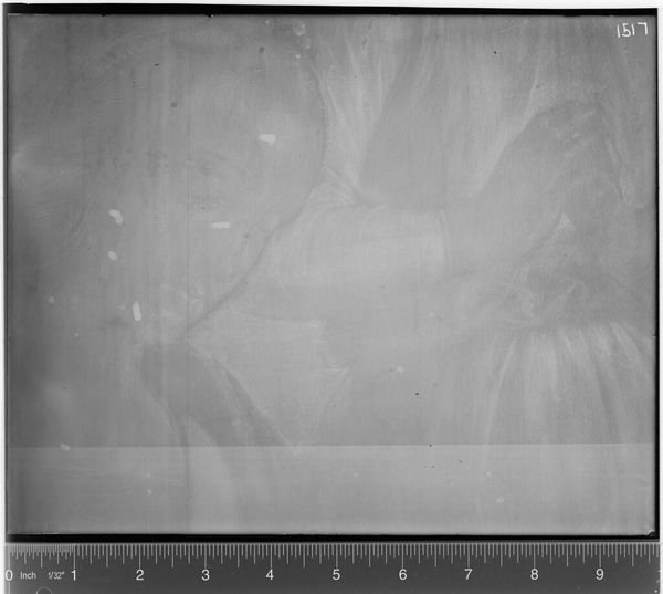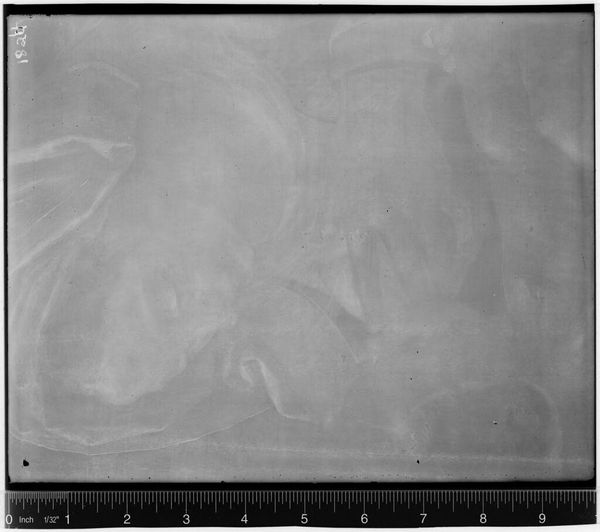 Curator: We're examining an X-radiograph of "St. Francis," attributed to Peter Paul Rubens. The piece resides at the Harvard Art Museums. Editor: My initial impression is one of ghostly forms. The image, lacking color, presents a somber, almost ethereal quality, revealing hidden layers beneath the surface. Curator: Indeed. X-rays such as this allow us to see alterations made by the artist, perhaps revealing changes in the saint's posture or the addition of symbolic elements. This process unearths decisions made, offering insight into the artist’s intent and the cultural symbolism embedded within. Editor: Structurally, the composition seems quite dynamic even in this abstracted form. The swirling patterns suggest movement and emotion, revealing Rubens’s skill even beneath the visible surface. Curator: Precisely. The X-ray serves as a powerful reminder that images hold deeper meanings, reflecting complex narratives of faith, artistic practice, and cultural memory. Editor: It's fascinating to see how the inherent structure and composition persevere even in this medium. It offers an entirely new perspective on artistic creation.