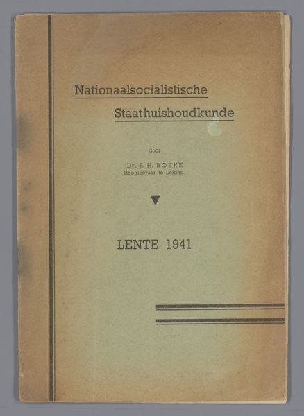 Curator: At first glance, this looks like a fairly straightforward document—but the muted green and carefully arranged typography give it an unexpected elegance. Editor: Indeed. What we have here is the cover for "Mathematische und naturwissenschaftliche Mittheilungen aus den Sitzungsberichten der Königlich Preussischen Akademie der Wissenschaften zu Berlin," or, roughly translated, "Mathematical and Scientific Reports from the Proceedings of the Royal Prussian Academy of Sciences in Berlin." This is Heft IV from April 1884. Curator: So, it’s essentially a collection of scientific papers presented to the Prussian Academy of Sciences? The typographic layout feels very much in line with the period, with that almost gothic feel despite being distinctly modernist. There’s a stark order to it, wouldn’t you say? Editor: Absolutely. This was a period when printed material carried tremendous authority; that tightly structured text embodies the seriousness and objectivity that scientific discourse aimed for. The borders too evoke a sense of established institutional tradition. Curator: Those small, ornate border details add a touch of understated embellishment that elevates it beyond pure functionality. It is more than just delivering information; it gives the information significance, authority even, through symbolism. It reflects how scientific knowledge was viewed – a key to understanding the universe’s hidden order. Editor: You’re right, these details also served to legitimize and perhaps even to aestheticize scientific knowledge within society. Notice also that the very choice of a sans-serif font aligns it with the emerging aesthetic trends of modernism, pushing for clarity and rationality in design to mirror developments in science itself. It's an intriguing visual manifestation of evolving epistemologies. Curator: Precisely! And that interplay – the modernist simplification combined with subtle ornamental echoes of tradition, gives it a powerful resonance. One feels the weight of both scientific progress and cultural continuity in such a seemingly simple design. Editor: It makes one consider the layers of meaning conveyed in what was likely intended as a purely functional piece of print. Curator: Exactly! What we thought to be functional speaks of cultural identity and evolving notions of truth and knowledge. Editor: An academic volume unexpectedly revealing about the cultural landscape from which it sprang.