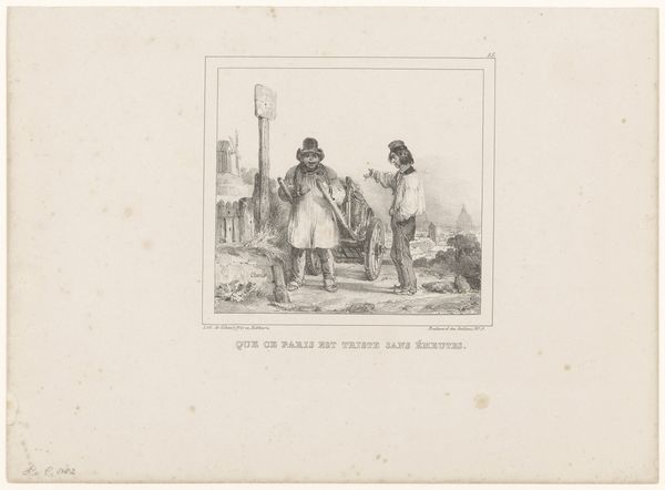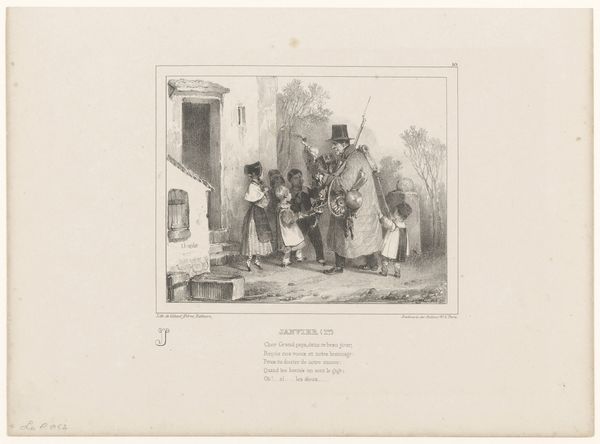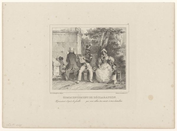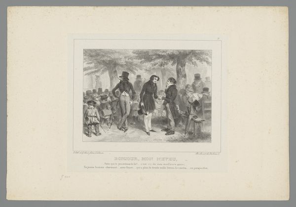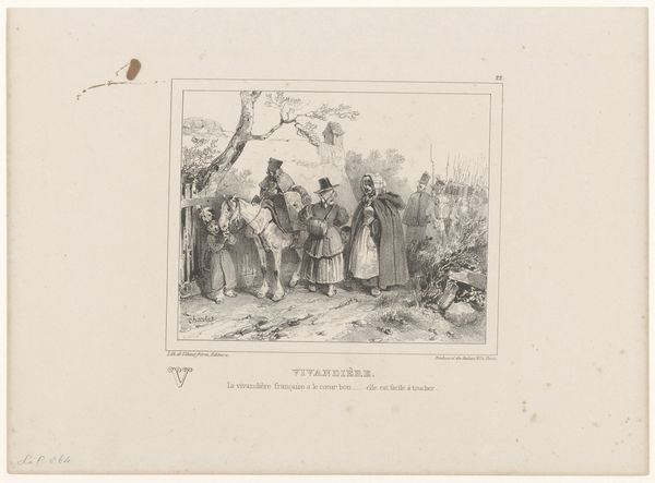 Nicolas Toussaint Charlet created this print, "Soldier and farmer drinking a glass of wine", using lithography. Charlet was a painter and printmaker, who was very proud of his military background and specialized in military subjects. This print illustrates the popular support for the French army amongst the populace after the Napoleonic wars. The lyrics underneath the image translate as, "What does it matter that I am Jean Nicolas of Sommeland, near Neuilly, in front! Yes, estimable man, who wants to share a glass of wine that you offer." The print is a wonderful primary source document of the time. It's an illustration of a French national identity being solidified and expressed in popular culture. We can use resources like historical archives, newspapers, and literature from the period to understand the significance of images like this one. This print reflects the social conditions of its time and participates in the creation of national sentiment.