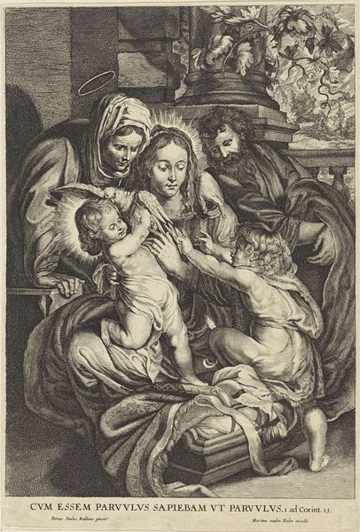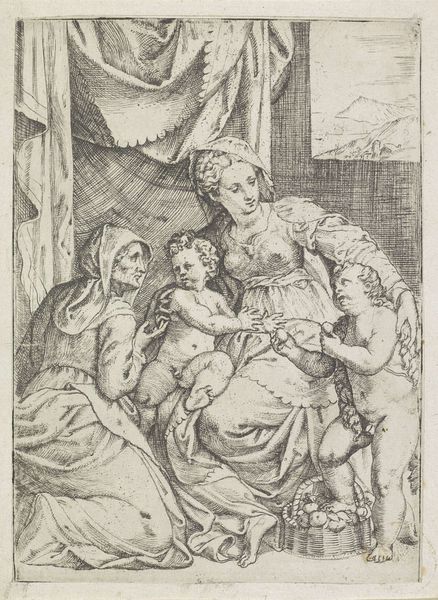 Jacob Matham created this engraving, Maria with Child and Elisabeth with the young John, in the Netherlands around the turn of the seventeenth century. It depicts the Virgin Mary and her cousin Elizabeth, each with her infant son, Jesus and John the Baptist. The image operates on the social and cultural logic of Counter-Reformation Europe, where visual and textual traditions were mobilized in defense of Catholic doctrine. The intimate, domestic setting of the scene, combined with the tender interaction between the figures, reinforces the importance of family, a key theme within the Church’s response to the rise of Protestantism. Notice, too, the inscription, which underscores the communal joy shared by the holy families. Historical research into the religious and political history of the period helps us to understand how images like this operated as powerful tools in the battle for hearts and minds during the Reformation.