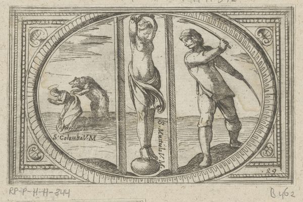 Antonio Tempesta etched this image of Saint Theodora in the late 16th or early 17th century. We see Theodora kneeling, hands clasped in prayer as two executioners stand ready to strike. Theodora's pose, kneeling in supplication, echoes poses of sacrifice found in ancient Roman reliefs and even earlier in Near Eastern art. This gesture, laden with submission and piety, transcends cultures. I see it in Renaissance paintings of the Annunciation, where Mary humbly accepts her divine role. Consider the executioner’s raised weapon. It's not merely a tool of death but a symbol of impending transformation, much like the raised knife in depictions of Abraham's sacrifice. This act, repeated across millennia, taps into our primal fears and fascinations with mortality. The image evokes a powerful emotional response, stirring collective memories of faith, suffering, and transcendence, engaging us on a profound level. We find this symbol resurfacing, evolving, taking on new meanings across history.