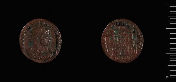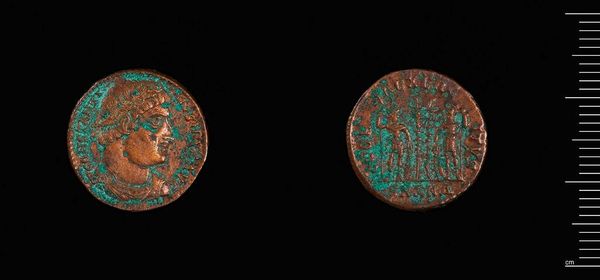 Editor: Here we have a coin of Constantius II, an AE3 from Heraclea. It looks incredibly worn, but I can still make out the portrait. What do you see in this piece? Curator: This coin isn't just a currency piece; it's a form of imperial propaganda. Constantius II, like many rulers, used his image to project power and legitimacy. Consider what messages he was attempting to convey through this small, yet widely circulated, object. Who was he trying to reach and what was his intent? Editor: So, the coin itself becomes a medium for asserting authority? Curator: Exactly. It speaks to the complex relationship between power, representation, and the masses in the Roman Empire. This coin also prompts us to consider issues of accessibility and dissemination of information within larger sociopolitical systems. What does it tell us about the social structures of the time? Editor: I never thought of it that way. It really makes you wonder about the power dynamics at play. Curator: Indeed. Examining the historical context allows us to critically analyze the artwork's function within its original society.