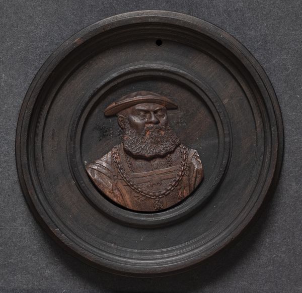 This is a boxwood portrait medallion of a man, created by Friedrich Hagenauer in the 16th century. Hagenauer was a German medalist known for his small-scale portrait medallions during the Renaissance. This work reflects the increasing importance of the individual and the rise of humanism. The detailed carving captures the man's likeness in profile, complete with beard, cap and elaborate garments. During this period, portraiture served not only as a record but also as a statement of identity and social status. The man's confident gaze and dignified appearance convey an aura of self-assuredness and authority. Consider how, even within the constraints of a small, circular format, Hagenauer manages to convey a rich sense of character and presence. This medallion offers a glimpse into the lives and values of individuals during the Renaissance, reminding us of the enduring power of art to capture and communicate the complexities of human identity.