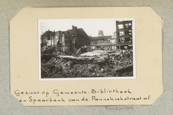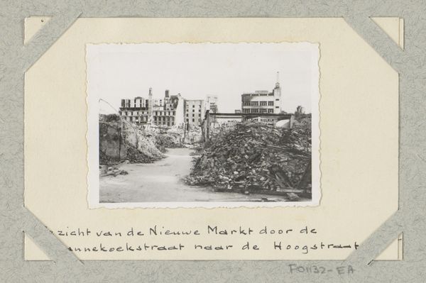 This photograph shows ruins on the Goudse Singel in Rotterdam. What strikes me is the commitment to greyscale as a decision making process, the tonal range, the way the image reveals or obscures particular details, just like choosing a particular colour. Think about the texture, or rather the lack of it. The surface is smooth, almost velvety, and the details are finely rendered. But it's the rubble and fragmented structures that really grab your attention. See how the light catches the edges of the debris, creating a sense of depth and chaos? It’s almost as if the photograph itself is a ruin, a fragment of a lost world. It reminds me of Gerhard Richter’s blurry photographs, where clarity is sacrificed for a sense of atmosphere and ambiguity. Both artists seem to be saying that sometimes, the most powerful statements are the ones that leave room for interpretation. They invite you to bring your own experiences, your own memories, to fill in the gaps.