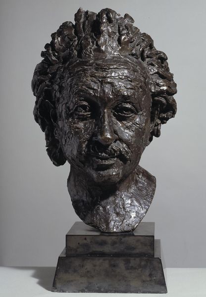Editor: So, this bronze bust portrays Ignacy Jan Paderewski. It's by Sir Alfred Gilbert, and it's currently held in the Tate Collections. The texture of the hair and the solemn expression give it such a romantic feel. What do you see in this piece? Curator: Gilbert's choice to depict Paderewski, a Polish pianist and composer who later became Prime Minister of Poland, isn't merely about artistic representation. It's a deliberate act of immortalizing a figure who embodies cultural and political resistance. Consider the late 19th century rise of nationalism and the fight for Polish independence; how does this sculpture speak to that struggle? Editor: It really highlights the power of art as a symbol of identity and resistance. I hadn't thought about it that way. Curator: Exactly! It prompts us to consider how representation intersects with power, memory, and the ongoing struggle for self-determination.