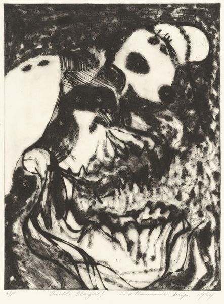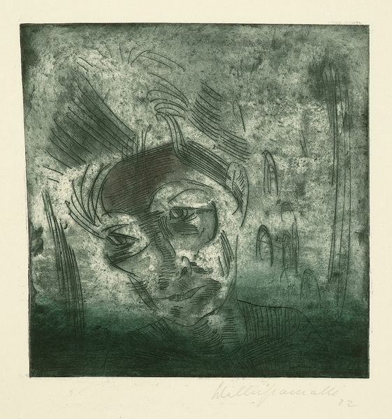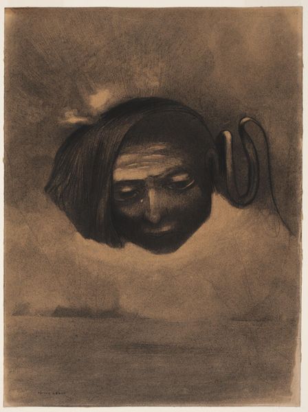 Curator: Redon's "Tears," created in 1878, gives us a profound insight into his early style through the Romantic lens, with definite symbolic undertones. The work is rendered with charcoal, one of his favorite mediums to conjure shadow worlds. Editor: Shadow worlds is right! It’s melancholic, almost oppressively so. The scale feels vast, even though it’s a drawing, like this monumental sadness looming over a dark sea. Is that water down below, or something else? Curator: Indeed. It is a charcoal drawing and yes, it’s water depicted at the lower portion. It contributes to a pervasive feeling of sorrow, or even defeat, especially given that central figure's cast-down gaze. Note the delicate hatching that gives form to the wavelets, contrasting with the almost aggressively smudged darkness that defines the head. The composition directs our attention to the eyes. Editor: Those closed eyes! There’s such a strange dichotomy at play. We can't see them, and yet, everything feels intensely, almost painfully, personal. I can almost feel the dampness of tears, heavy, fat tears that trace a path across his features, despite his eyes remaining firmly closed. Tell me about the wings, or rather, that singular wing tucked above his ear. Curator: That placement of the wing... that's what gives this piece its ethereal quality. It hints at transcendence, an attempt at escape perhaps, weighed down by earthly emotion. Perhaps he weeps from the inability to transcend those burdens of existence. And that singular wing can represent the failed dreams of men weighed down by mortal affairs. Editor: Yes! Absolutely. Failed ascension… I also see it as potential. The fact that it is only a wing alludes that it isn’t too late to fly. I still find the figure intensely sympathetic; perhaps what haunts him can also set him free. Curator: A compelling alternative reading, viewing it from the perspective of optimism that does open up Redon's world! Regardless of how one chooses to interpret it, "Tears" invites us to delve into the heart of our own emotional landscape. Editor: Definitely, “Tears" makes us look into the mirror and question ourselves on whether we have flown far enough, or just let ourselves be weighed down.