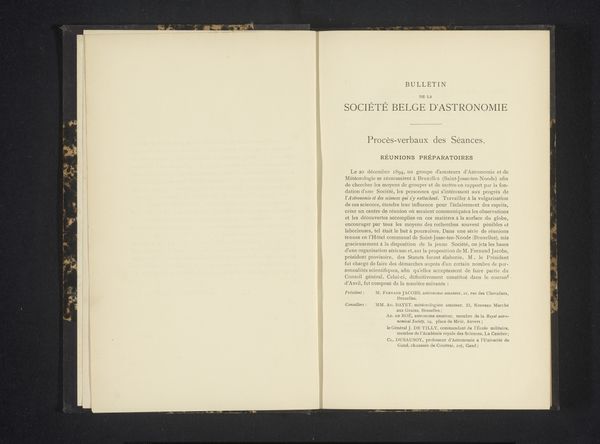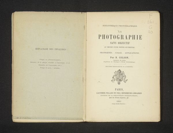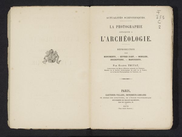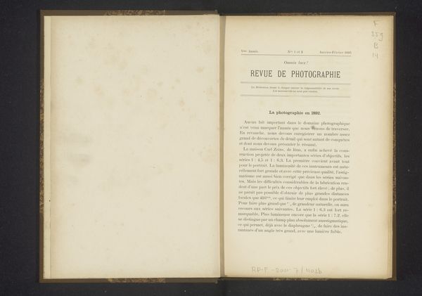 Curator: Here we have the opening pages of "Die Photographie im Dienste der Geisteswissenschaften," or "Photography in the Service of the Humanities," from 1906 by Karl Krumbacher, utilizing print and photographic processes on paper. Editor: My initial reaction is struck by the stark contrast and restrained design; there's an almost palpable sense of early modernist objectivity and functionality communicated through the layout and typography. Curator: Absolutely. Krumbacher's text arrives at a crucial juncture, as photography transitions from mere documentation to an invaluable tool for cultural and intellectual discourse. He delves into how photography might serve, say, the then-nascent field of folklore studies. Editor: Semiotically, the image itself underscores this premise. The simple typographic elements project a sense of order and systematization. This mirrors the broader cultural aspiration to organize, categorize, and rationalize visual information in the age of burgeoning mass media. Curator: Moreover, one should remember that early photography held inherent class biases in that, frequently, it captured people or communities under the aegis of scientific exploration. Consider, for instance, anthropological expeditions—oftentimes such photos objectified their subjects. Editor: I'd add the careful justification of text within the right-hand page certainly conveys a measured formality, with each line's length precisely considered—a visual assertion of authorial control and structured knowledge. Curator: Which raises questions: whose narratives were amplified, and conversely, suppressed, when photography moved beyond the lens of merely capturing likeness? What happens when communities begin to embrace this once-unilateral technology themselves? Editor: Right. Well, I see it more simply. Ultimately, in this composition, through typographic balance and unadorned presentation, an ambition emerges, the ambitious harnessing of photography for rigorous scholarly investigation. Curator: It's remarkable to witness how quickly photography became entangled within questions of power and representation. Editor: Yes, the book’s design itself participates actively in shaping the viewers interpretive experience of photography and early modernist ambitions in academia.