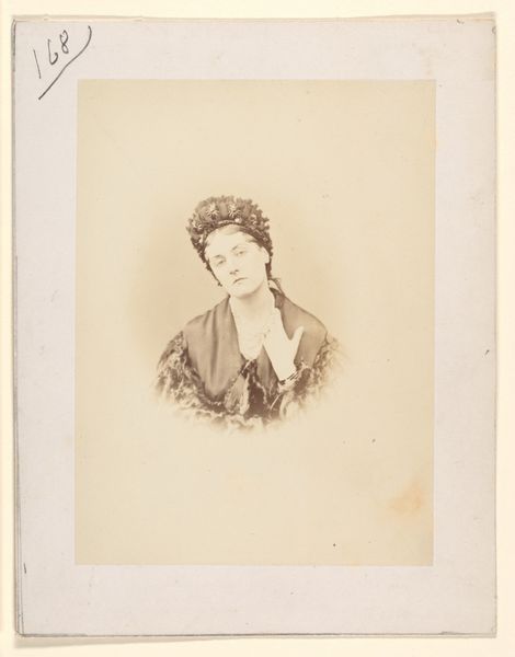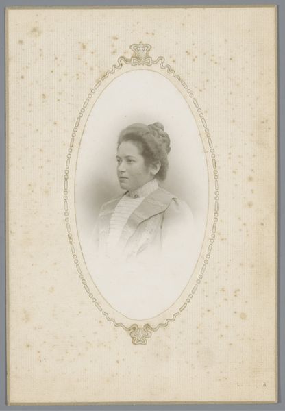 Editor: Here we have a photographic portrait by Eugène Manoury, "Portret van een onbekende vrouw," created sometime between 1870 and 1885. The sepia tones and the woman's averted gaze give it such a quiet, contemplative mood. What do you see in this piece? Curator: I see a commentary on the very act of representation in the late 19th century. Photography offered, ostensibly, a democratic form of portraiture, yet who had access? Who was being excluded, and what societal forces are at play when we consider "the unknown woman"? Is her anonymity a deliberate act of erasure, or simply a reflection of historical neglect? Consider how race, gender, and class shaped whose stories were told and preserved in that era. Editor: So, you're saying her anonymity isn’t just a historical accident but a reflection of power structures? Curator: Precisely. Realism in art, especially photography, aimed to capture an objective reality, yet it inevitably reflects the biases of the artist and the prevailing social order. The photograph seems like a record, but what if this record omits vital details? Editor: It makes me think about all the untold stories from that time. Was it typical to obscure women in these ways in portraiture? Curator: Think about the visual language of the period, the expectation that women occupy particular spaces, usually private. How does the deliberate ambiguity of this image disrupt or reinforce those conventions? We are left to imagine her history, and in that act of imagining, perhaps, begin to address some of those silences. Editor: I’ve never thought of portraiture that way – as a kind of active erasure. Curator: Indeed. And the absence can speak volumes. This photograph is not just a picture, it's a document reflecting what was valued and, equally important, what was deliberately not valued, in 19th century society. Editor: Thanks, that gives me a lot to think about in terms of visual rhetoric and the unseen narratives in historical portraits. Curator: It certainly illuminates photography's fascinating capacity for historical insight.