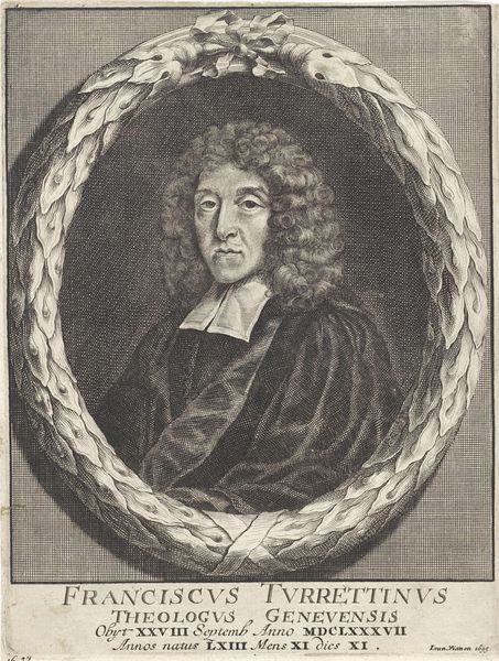 Editor: This is a portrait of Etienne le Moine, an engraving made between 1687 and 1691 by Anthony van Zijlvelt. I’m struck by the precision of the lines; it feels almost photographic, despite being so clearly hand-worked. What stands out to you in this piece? Curator: Well, I’m immediately drawn to the materiality of the engraving process itself. Consider the labor involved: the meticulous carving of the lines into the metal plate, the skilled inking and pressing. It’s a form of mechanical reproduction, yes, but one intimately connected to human skill and effort. Look at the texture, achieved entirely through manipulation of the burin! What does that labour tell us about the perceived importance of the person depicted, Le Moine? Editor: So, the engraving technique elevates him in some way? Is it more about the act of making than about the sitter himself? Curator: Precisely! This isn't just about representing Le Moine's likeness. It's about the societal structures that valued theologians and academics so highly. The printing press itself was a powerful tool and access to these materials reflected access to knowledge. Note also how the Baroque style lends itself to the portrait - and consequently the man - being framed in monumentality and reverence. Editor: That's fascinating. I hadn't considered how the very process of creating the image reinforces social hierarchies and also suggests power. The physical effort embedded in the work seems a world apart from our digital image-making today. Curator: Indeed. Examining the means of production highlights how art serves to not just reflect society, but actively construct and maintain it. A true feat considering the relatively simplistic tools used for the engraving. The final result becomes a window into the values and the labour systems that built it, even more than a window into the past. Editor: That gives me a whole new perspective. I was focused on the image itself, but now I appreciate how much the materiality speaks too. Curator: Exactly, and it allows a new lens through which to appreciate, and engage, with not only the final artwork but also the labour from which it sprung.