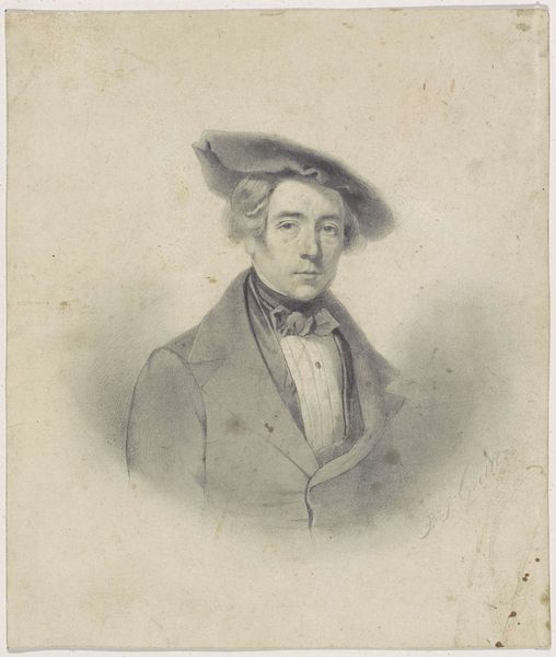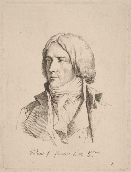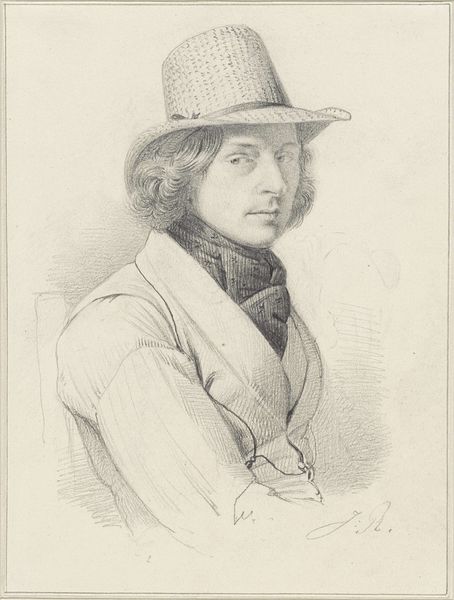 This is Francisco de Goya's self-portrait etching, a study in contrasts and tonal gradations. The artist presents himself in profile, dominated by a large hat that casts a shadow across his face. Observe the etching technique—the fine lines create textures and define forms with incredible precision. The areas of shadow and light are not just illustrative; they create a palpable sense of depth. This play with light and dark is characteristic of Goya's broader artistic concerns. In many ways, Goya destabilizes the idea of the artist as a confident subject. By using semiotic systems to interpret the visual elements, we see a blend of pride and introspection. Goya presents himself as 'painter', yet the shadowed face and detailed rendering suggest a deeper, more complex engagement with the self. Consider how Goya's technical skill enhances the emotional depth of the portrait. The way the light catches the brim of his hat, for example, adds to the dramatic intensity, inviting us to continually reinterpret the portrait's narrative.