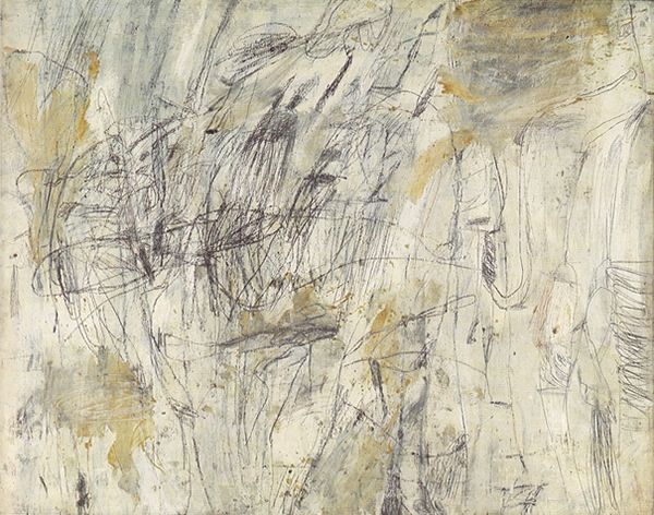 This ‘Untitled’ painting by Cy Twombly is a world of greys, blacks, and whites, all brought to life through the immediacy of oil on canvas. Looking closely, you can see how Twombly layers the paint, almost like he's wrestling with the materials. The thick, gestural strokes give a real sense of urgency. It’s as if he’s trying to capture a fleeting thought or emotion right there on the surface. The canvas seems to absorb the energy of his movements. It’s not just about what the painting depicts, but how it was made. You can imagine Twombly working quickly, his hand flying across the canvas, leaving behind this raw, visceral record of his process. The work doesn't give up all its secrets at once. It encourages a slower, more considered way of seeing. It prompts us to think about the material and the making, blurring the line between art and pure expression.