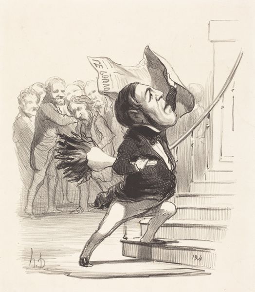 Honore Daumier sketched "Une Guerrier électrisé" depicting a man receiving an electric shock. He stands on a podium, a spectacle for onlookers. The jolt he receives is not merely physical; it's a visible manifestation of internal tension. We can trace the motif of shock—the sudden, overwhelming sensation—back through art history. Think of Caravaggio's "Conversion of Saint Paul," where the saint is thrown from his horse, blinded by divine light. The electric shock mirrors this divine intervention, a moment of profound, albeit secular, revelation. The open-mouthed expression, reminiscent of ancient masks of tragedy, conveys a raw, unfiltered emotion, connecting us to primal human experiences. The imagery captures a moment of dramatic transformation, echoing through time and culture, revealing our enduring fascination with the boundary between the physical and the psychological.