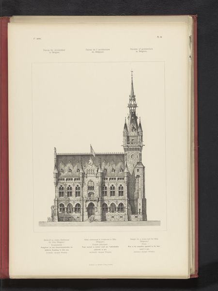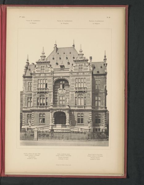 Curator: Welcome. We’re looking at "Gezicht op het gebouw van de nationale bank in Antwerpen, België," an image created before 1893 by Römmler & Jonas. It’s currently held in the Rijksmuseum collection. Editor: The overall tonality here seems very cool and rational, almost clinical in its precise depiction. I’m immediately struck by the dominance of architectural form, the solidity of the bank itself against the indeterminate background. It certainly speaks to the values of order and authority. Curator: The work indeed operates through its lines and structure. Note how the receding planes establish spatial depth, framing the ornate facade with the meticulous accuracy that defines academic art. The realism employed seems focused on objective detail rather than emotive expression. Editor: True, but let's also consider how such a highly detailed print was made and consumed. I wonder about the engravers, etchers, and printers. The division of labor is worth exploring—who owned the means of production here, and for what purposes did the Nationale Bank commission or disseminate such prints? Were they widely distributed, or meant for a select audience? Curator: Intriguing points! The medium—drawing and printmaking—itself demands a methodical, repetitive action which harmonizes with the image’s message of regulated stability. Each line is a deliberate construction of this monumental impression. Editor: And the monumental is critical—what kinds of labor went into physically constructing such a massive edifice? The choice of building materials also reinforces the message. That facade speaks of wealth accumulation as well as institutional solidity through its careful assemblage and ornamentation. I suppose what interests me most is how the print participated in producing and celebrating Belgian capitalist interests. Curator: Indeed, considering such aspects reveals the latent ideologies behind these artistic expressions. This offers viewers insights into their cultural relevance when viewed as symbols intended both architecturally and symbolically by RÖmmler & Jonas. Editor: I agree. Examining artwork, in relation, is a necessary engagement for interpreting a historic visual imprint that served a capitalist aesthetic as we find depicted here today.