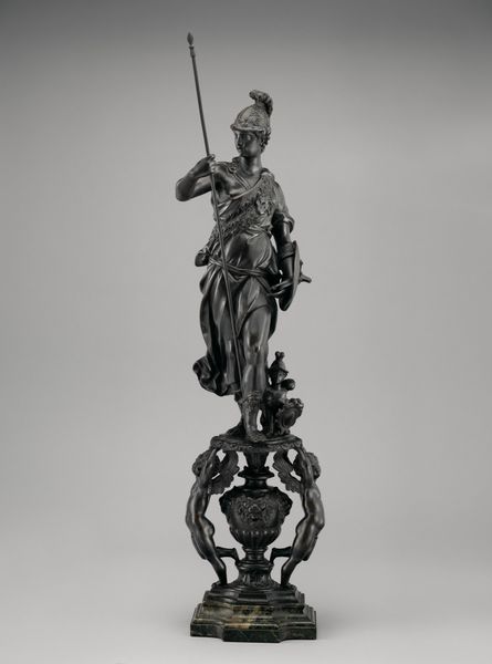 Girolamo Campagna created this bronze andiron, featuring Ceres as an allegory of peace, in the late 16th or early 17th century. Campagna was working in Venice, during a time when the city was a major center for art and culture, but also a complex social and political landscape. The figure of Ceres, the Roman goddess of agriculture, fertility, and motherhood, embodies a vision of peace deeply entwined with the productivity and nurturing power of the land. In this way, Ceres transcends a simple symbol; she is a figure through which early modern viewers could contemplate the connections between social stability, gender roles, and natural abundance. Consider how the choice of Ceres, a female deity, subtly challenges or reinforces contemporary patriarchal norms. As you reflect on this andiron, think about how historical representations shape our understanding of peace and prosperity today.