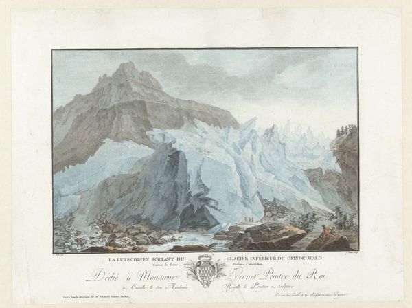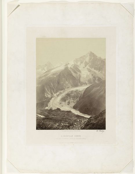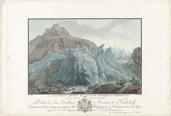 Editor: So, this is Johann Hürlimann's "View from the Foot of the Finsteraarhorn." I’m immediately struck by the almost… theatrical presentation of the landscape. What do you see in this piece? Curator: Well, it's funny you say theatrical, because there is a kind of constructed drama, isn't there? Like a stage set with rocks in the foreground, and then the rising action of the landscape culminating in the majestic peak. It's less about pure representation and more about evoking a feeling, maybe of the sublime? It makes me wonder about the artist's intentions. Editor: It does make you feel small. So, Hürlimann isn’t just painting a mountain, but an experience of the mountain? Curator: Precisely. I suppose, for me, it’s a reminder that art isn't just about what we see, but how we feel when we see it. Editor: I never thought about landscape that way before. Thanks!
