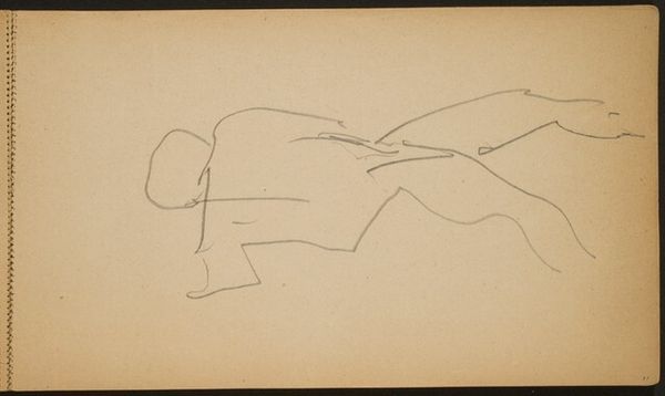 Curator: At first glance, this drawing, "Koe," which translates to "Cow" in English, seems remarkably sparse. Created circa 1905 by Carel Adolph Lion Cachet, it's a study rendered in light pencil strokes, housed in the Rijksmuseum. Editor: It's the kind of image that begs the question: is this unfinished, or is this the complete idea? It gives the feeling of capturing a fleeting moment, the very essence of 'cowness' in a few lines. The cow isn't presented, she is only implied, just like the memory of a passing cow. Curator: Precisely! Cachet was known for his graphic design work, including his work with lettering. This sketch provides insight into the process of designing imagery—reducing a form to its barest visual essence for symbolic impact. It demonstrates what could have served as a study or a foundation for a logo or illustration. Editor: Seeing these preliminary explorations fascinates me because it lifts the curtain on the art-making process. We often only encounter polished outcomes; we are looking here into the artist’s thought process, watching him strip a figure down to almost calligraphic components, seeing something primal, in an agrarian sense, revealed through a modern sensibility. How does this sketch reflect the socio-political factors during the turn of the 20th century? Curator: Cachet came of age during a time when new printing technologies and distribution models emerged. This changed the relationship to authorship. Artists began making commercial applications of what once belonged to the realm of 'high art.' Artists grappled with the intersection of art, branding, and everyday life. Such forms became highly visible, suggesting the public and social role that the artist plays within a rapidly industrializing society. Editor: So, is this image as a prototype, for what he feels like is becoming an artistic problem, to simplify something down into its simplest symbol. The cow becomes reduced to just an indication, so it can function as an indication, for an agricultural idea, or just the feeling of “pastoral farm-y feeling”? Curator: Perhaps it reflects the broader search for authenticity, a desire to reconnect with a pre-industrialized past in a way, through stylized natural imagery stripped down to only the elements. The sketch preserves Cachet’s intention. It presents the tension that the artist experienced between individual expression and designing accessible visual elements that became embedded in our collective culture. Editor: Viewing the sketch gives insight into what can become widely accessible: even the simplest of artistic gestures can be culturally lasting. Curator: Yes, something gestural and fleeting holds enduring cultural power.