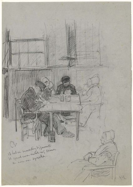 Isaac Israels made this drawing, "Vrouwen aan het werk, mogelijk naaisters," with graphite, and it's all about capturing a moment, a process, a feeling. The marks aren't precious; they’re quick, exploratory. It's like Israels is thinking through the image, right there on the page. Look at the way he suggests the women’s forms with just a few lines, how the table almost disappears into the background. There’s a wonderful economy to it, a real sense of immediacy. Graphite is a humble material, but here, it’s used to create a sense of light and air, a real atmosphere. That scribble of lines that define the one woman's hands, it’s almost abstract, but it tells you everything you need to know. It feels like he’s caught the essence of these women at work, the quiet concentration, the rhythm of their movements. You see this kind of approach in Degas’ drawings, too, that interest in capturing fleeting moments of everyday life. It's a reminder that art is about seeing, feeling, and responding to the world around us.