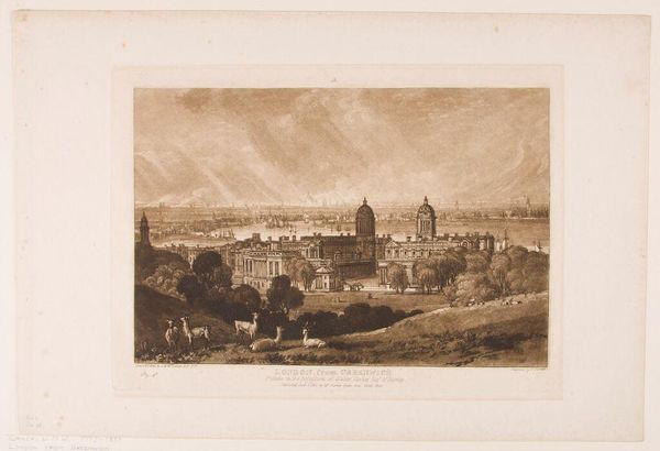 Editor: This is "Powderham Park, Exmouth," an engraving by Clarkson Stanfield. It looks like a peaceful scene, but I'm curious about the people working. What do you see in this piece? Curator: The engraving depicts labor, specifically the extraction and transportation of timber. Notice the contrast: the idyllic landscape juxtaposed with the manual labor required to sustain it. How does the artist present the relationship between the land, labor, and social hierarchy? Editor: That's interesting. I hadn't considered the social context of the work. It makes me think about who profits from this labor. Curator: Exactly. The means of production are clearly displayed, challenging conventional ideas about landscape art as solely aesthetic. Consider also the market for engravings like this – who was consuming these images? Editor: I never thought about that before. It gives a whole new meaning to the artwork. Thanks! Curator: Indeed, understanding the materials and processes helps us see the economic and social dimensions of art.