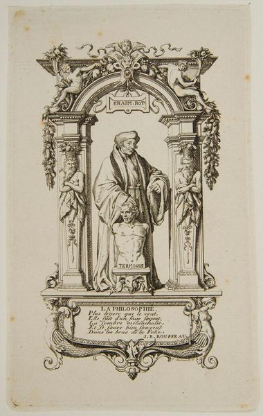 This is Paulus Pontius’s ‘Portret van Mulay Hasan, koning van Tunis’, an engraving of 1603, now at the Rijksmuseum. At first glance, the portrait presents a formal depiction of Mulay Hasan, framed by architectural elements. The composition is structured vertically, drawing the eye from the ornate base, up past the columns, to the figure of Hasan himself. The framing creates a sense of depth and importance, using symbolic elements such as elephants and inscriptions to contextualize the subject's reign. The detailed line work and contrasting textures contribute to the portrait's visual complexity, where semiotic systems operate through emblems of power. The symmetrical arrangement of the composition suggests an ordered world view. Yet, the inclusion of exotic animals and foreign scripts introduces an element of the ‘other’, destabilizing any claims to absolute authority. Consider the visual grammar at play here: how does Pontius use classical motifs to portray a figure from a different cultural and religious background? This contrast invites a deeper analysis, prompting us to question the fixed categories through which cultural representation operates.