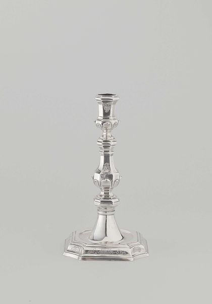 This is a smooth silver candlestick with a short stem and round base, crafted by Martinus van Stapele in the 18th century. The candle, and by extension the candlestick, is a powerful symbol of enlightenment and hope. Think back to ancient rituals, where flames danced in the darkness, dispelling ignorance and fear. This singular source of light resonates with the ancient symbol of the ‘axis mundi’ – the world's axis – connecting the earthly and the divine, a concept as old as the Tower of Babel. Consider its presence in religious ceremonies, a beacon of faith and guidance. From the simple hearth fire of domestic life to the grand candelabras illuminating royal halls, the candle’s flame has been a constant companion throughout human history. It’s a potent reminder of our collective desire for clarity and understanding, a light against the shadows of the unknown, and a symbol of hope.
