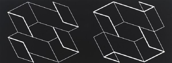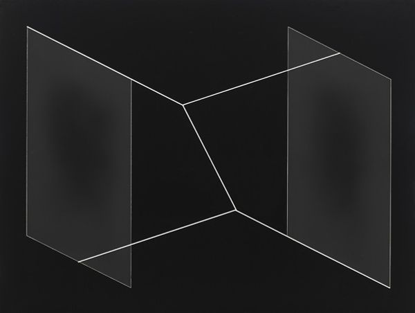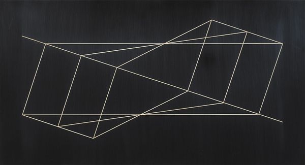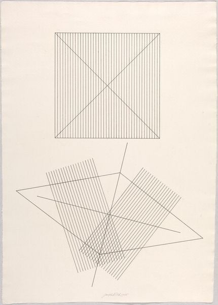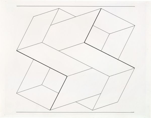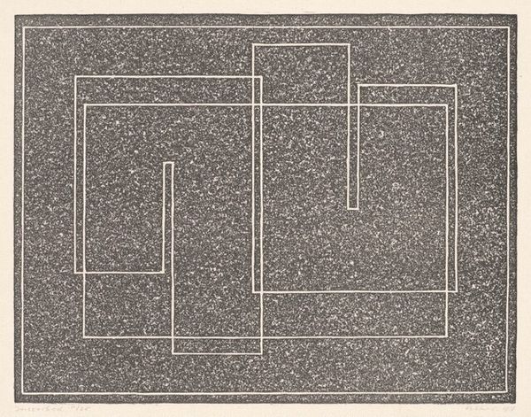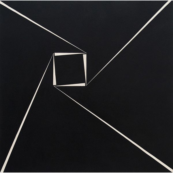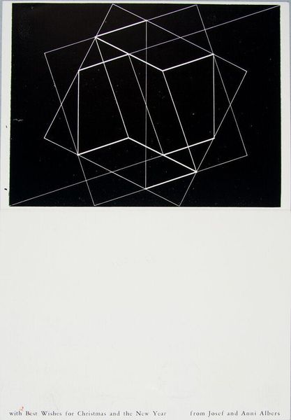 Editor: Here we have Josef Albers' "Reproduction of Transformation D," a study in stark contrasts. It feels like a blueprint for a building that exists only in the mind. What do you make of it? Curator: It's a dance between order and chaos, isn't it? Albers, ever the color and form guru, pushes the boundaries of perception. Those intersecting lines tease the eye, creating a space that both invites and confounds. Do you feel a sense of movement? Editor: I do, it feels like it's unfolding or collapsing at the same time. It makes me slightly dizzy. Curator: Exactly! Albers was brilliant at capturing that sensation. It makes you wonder what other secrets are hiding just beyond our senses. Editor: I never thought simple lines could feel so complex. Thanks for sharing your thoughts! Curator: My pleasure. Keep looking, keep questioning!