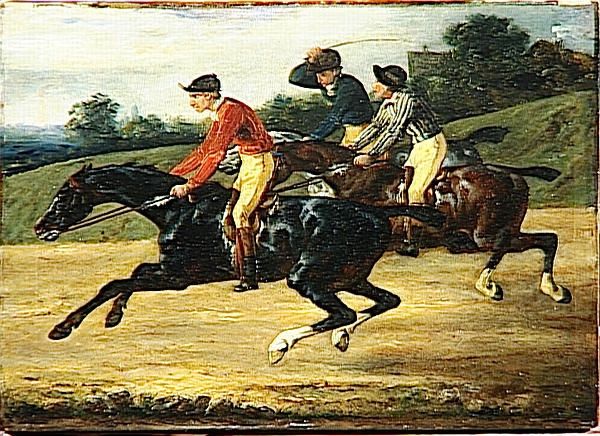 Théodore Géricault created this small oil on canvas, The Horse Race, sometime in the early 19th century. Here, Géricault applies the traditional medium of oil paint to explore an entirely modern phenomenon: the spectacle of horse racing. Looking closely, you see the artist has deployed the material to create a sense of breathless speed. He applies the pigment rapidly, in short dashes that follow the forms of the horses and their riders, conveying the texture of their bodies and clothing. Notice how the paint is thinnest in the background, and becomes more built up as we approach the foreground. The painting offers insight into the emerging culture of leisure and spectacle in the 19th century, where horse racing became a popular pastime for the upper classes. It is fascinating to consider how Géricault's expert handling of his materials contributes to the sense of drama and excitement, turning what could be a simple depiction of a race into a powerful statement about modernity.