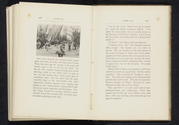 This image, found in a book, shows a handcart in a street in Japan and was made by William Kinnimond Burton, likely in the late 19th century. Burton was a British engineer and photographer who spent many years in Japan, documenting its people and landscapes. The image presents a snapshot of everyday life, highlighting the economic realities of the time. The handcart, pulled by laborers, suggests a society reliant on manual labor and perhaps limited infrastructure. The surrounding buildings, though not clearly visible, may offer clues about the urban environment and social stratification. Consider the institutional context: Photography at this time was becoming more accessible, and images like these were circulated to inform and shape perceptions of Japan among Western audiences. We can research further into photographic archives, travel writings and colonial records to understand the cultural exchange and power dynamics at play. The study of images as historical documents allows us to reflect on the relationship between representation and reality.