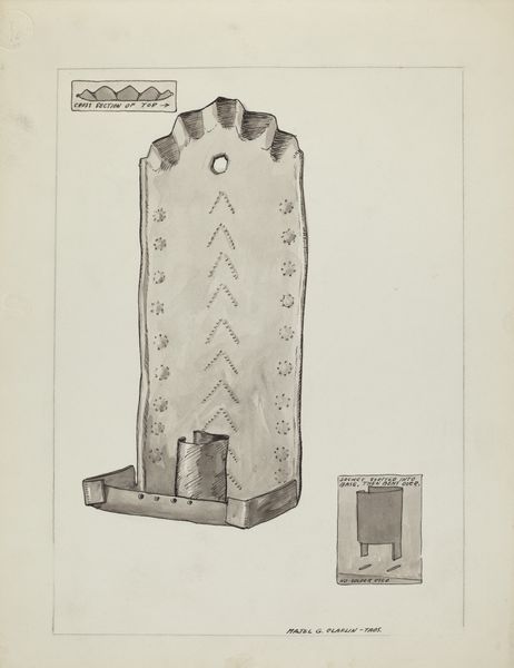 Editor: This is Emile Cero’s “Firemark,” from around 1937, made with pencil and graphite on paper. It depicts what looks like a stylized wooden plaque with four hands clasped in the middle. There’s a somber feeling, given the grayscale and the age suggested by the texture of the wood. What historical context can you offer that might illuminate this image further? Curator: The depiction of clasped hands, particularly in such a formalized arrangement on what resembles a plaque, is suggestive of a societal pledge. Given the date, around 1937, and the artwork’s title, one can consider the socio-political anxieties related to the rise of totalitarian regimes, where enforced solidarity became a potent tool for control and repression. What about the image makes you ask about context? Editor: The “Firemark” title is evocative and juxtaposed with the symbol of unity, almost ironically. Were these firemarks common in art? And, given your read on forced unity, is Cero possibly critiquing something? Curator: "Firemark," particularly in that era, usually refers to identifying plaques insurance companies once gave policy holders to attach to their buildings to signal to firefighters. They have since evolved into a popular collecting hobby in America. Cero was likely exploring themes of safety and collective responsibility. Was this form of endorsement authentic or transactional? Consider the public function of art in conveying such complex messages and in subtly resisting prevailing ideologies. The very act of depicting it as an aged artifact opens the door for criticism. Editor: So, it is an almost cynical perspective on societal support mechanisms? That tension makes this so much richer than I initially thought! I’ll definitely carry this new knowledge forward. Curator: Indeed. Analyzing it within a broader history and understanding what such icons meant allows for nuanced interpretations of artistic expression. And it encourages us to reconsider the evolving role of visual language within societal narratives.