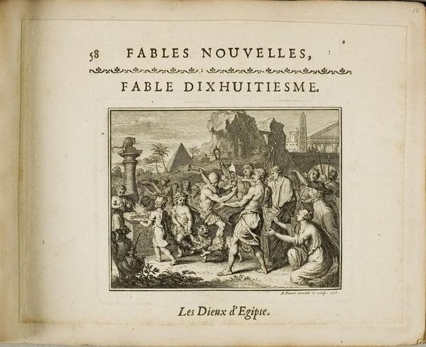 Curator: Here we have Claude Gillot's etching, "Avarice and Minos." Gillot, who lived from 1673 to 1722, captures a rather grim scene in this plate. Editor: My first thought? Claustrophobia! That boat is packed with souls, and the landscape drips with despair. What a powerfully bleak piece! Curator: Indeed. We see Minos, judge of the underworld, alongside figures representing avarice, alluding to themes of judgment and the consequences of greed within a socio-political framework. The figures in the boat represent a larger commentary on morality. Editor: The etching technique really amplifies the torment, doesn’t it? Look at those writhing bodies! It's like a visual scream against injustice. Curator: Gillot’s background in theater design likely influenced the composition and dramatic quality, placing the figures in this hellish staging. Editor: Seeing this has made me want to reassess how I’m living! Art has the power to do that, doesn’t it? Curator: Precisely! Gillot's work encourages us to examine our own moral compass in relation to historical and contemporary societal structures.