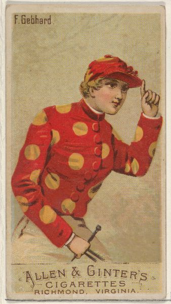 This small chromolithograph of Count Elemer de Batthyany was printed by Allen & Ginter Cigarettes in the late 19th century. These cards were inserted into cigarette packs as a promotional item, and they reflect the Gilded Age's fascination with celebrity and leisure. The 'Racing Colors of the World' series catered to the era's enthusiasm for horse racing. These images served as visual shorthand for class status, depicting the colors associated with prominent racing figures. Here, we see the Count in his distinctive yellow and white attire. The choice of portraying the Count hints at the cultural exchanges happening at the time and reflects an American audience's interest in European aristocracy and its sporting culture. The image is both a commercial product and a window into the social values of the time. By researching the history of advertising, popular culture, and the biographies of figures like Count Elemer, we can better understand the complex meanings embedded in this small card.